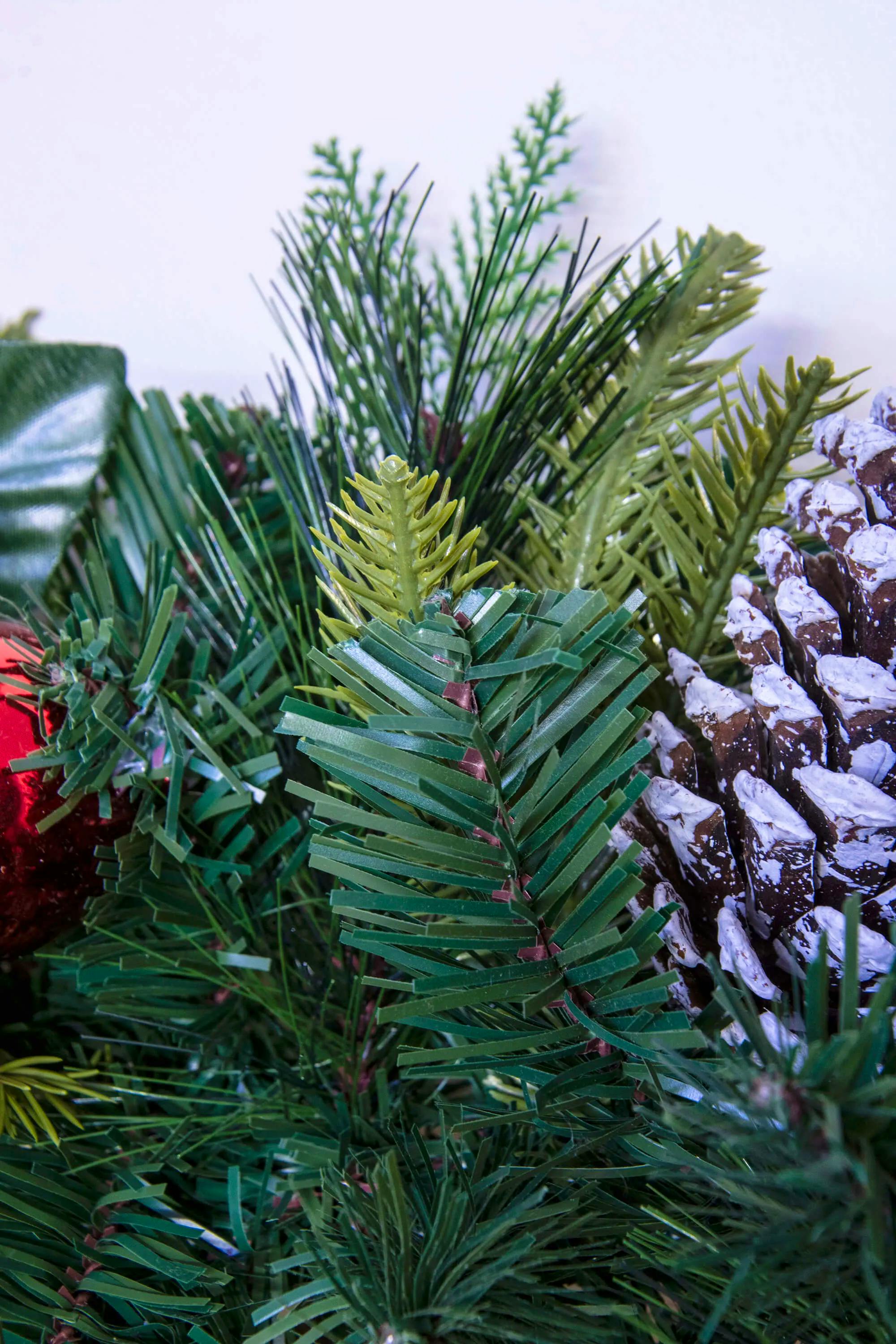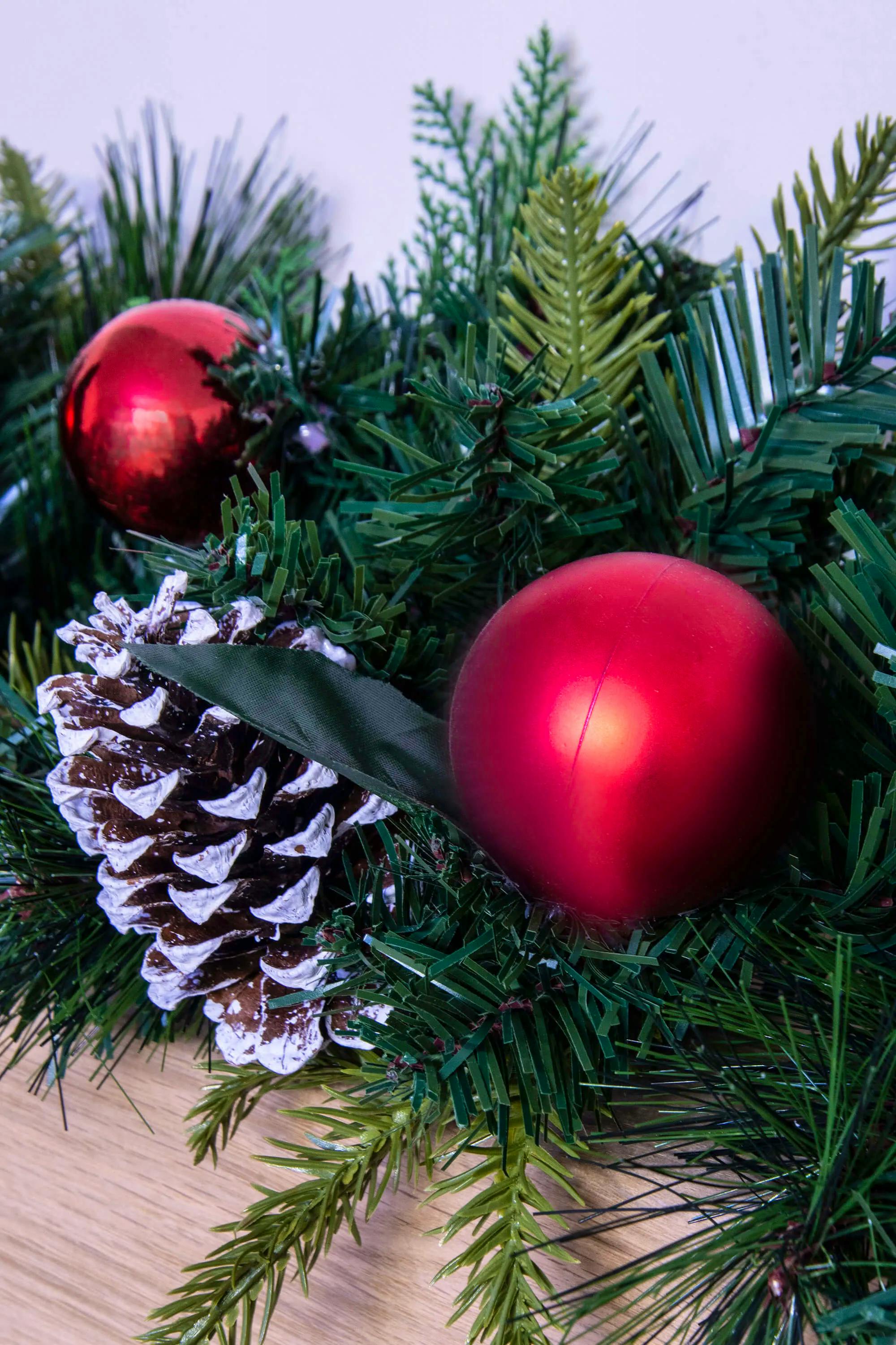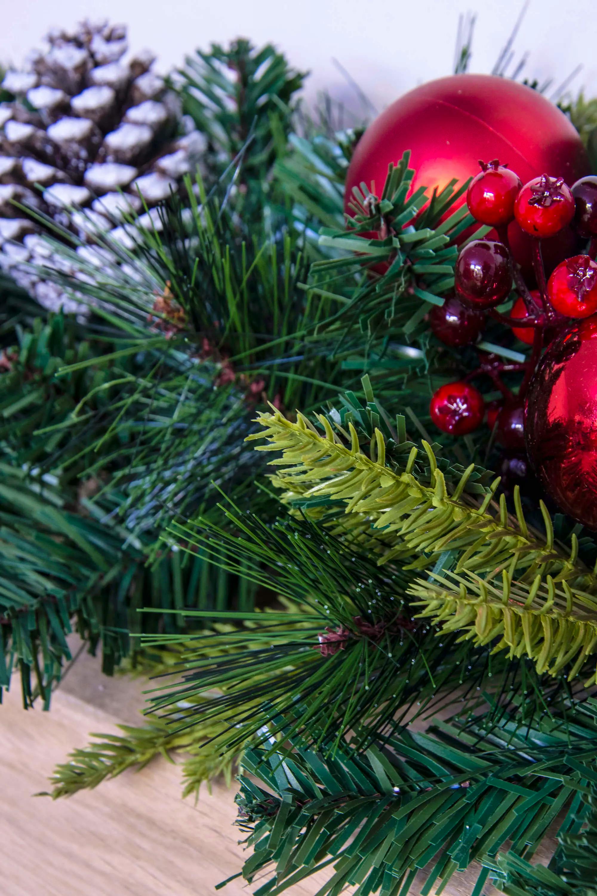Reasons you’ll love the 180cm Decorated Mixed Pine Garland with Red Baubles...