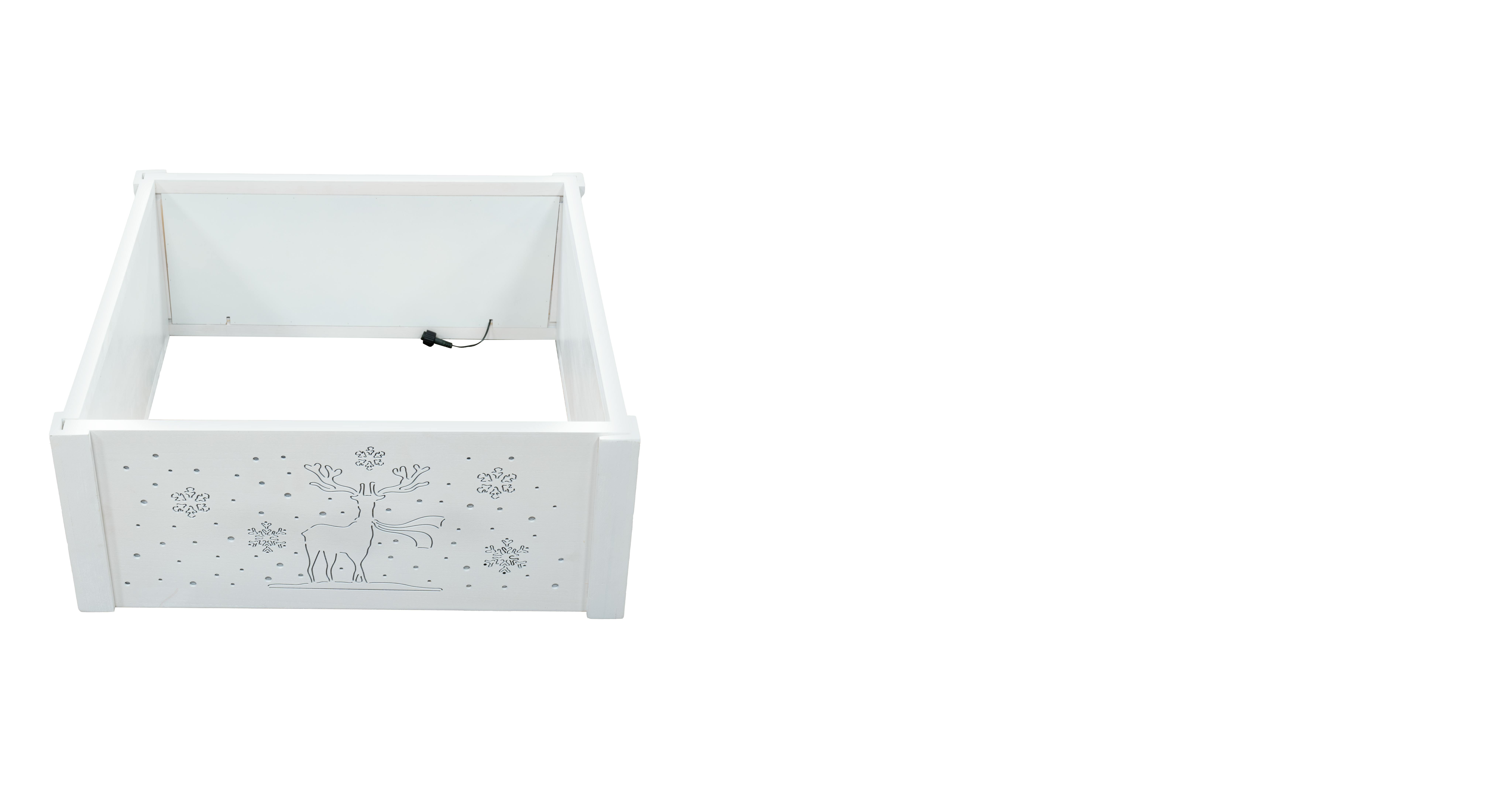 Pre-lit Large White Wooden Christmas Tree Skirt - Reindeer & Snowflake Scene