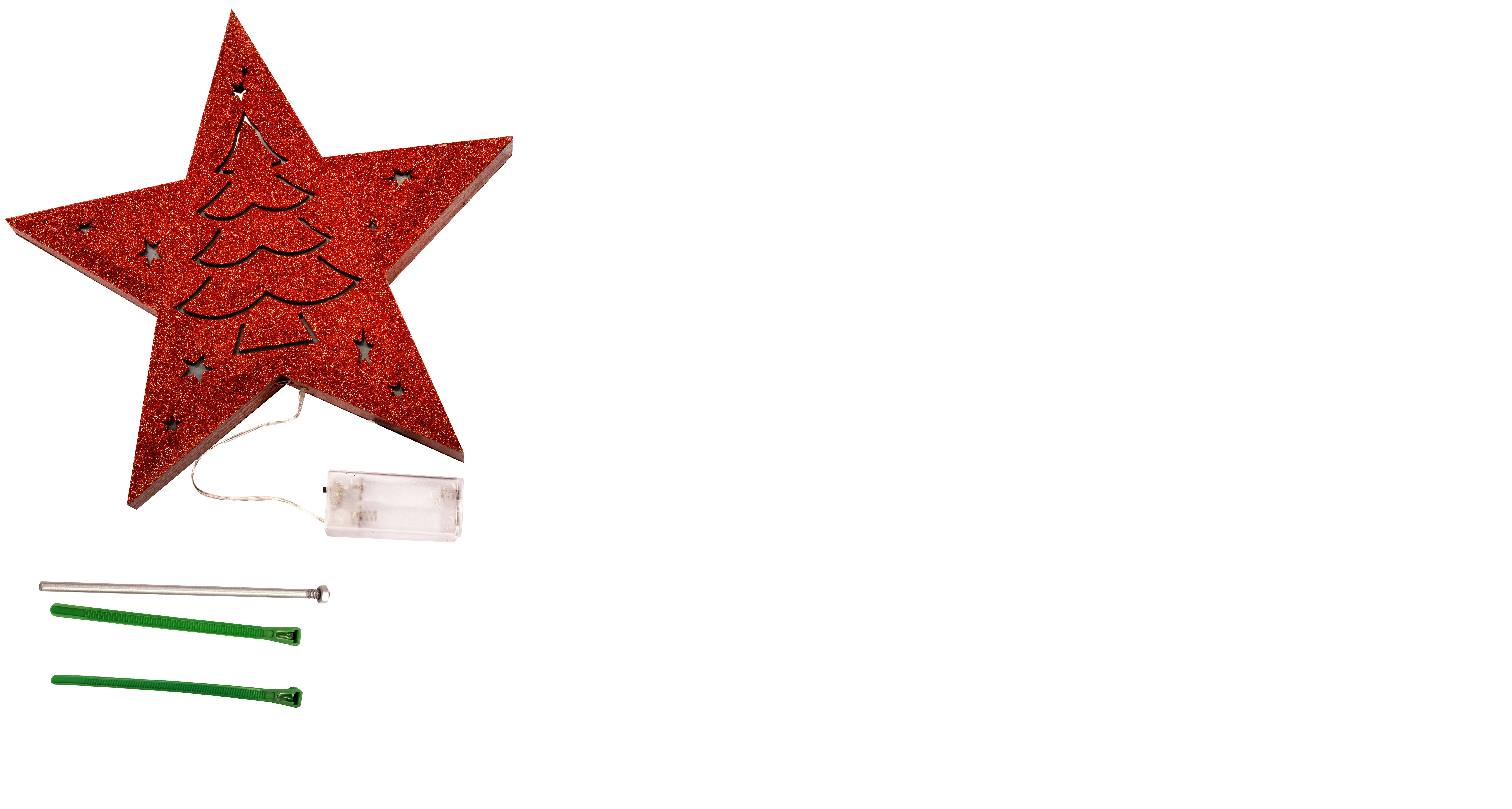 Red Battery-Powered Star Tree Topper - Tree & Stars Scene