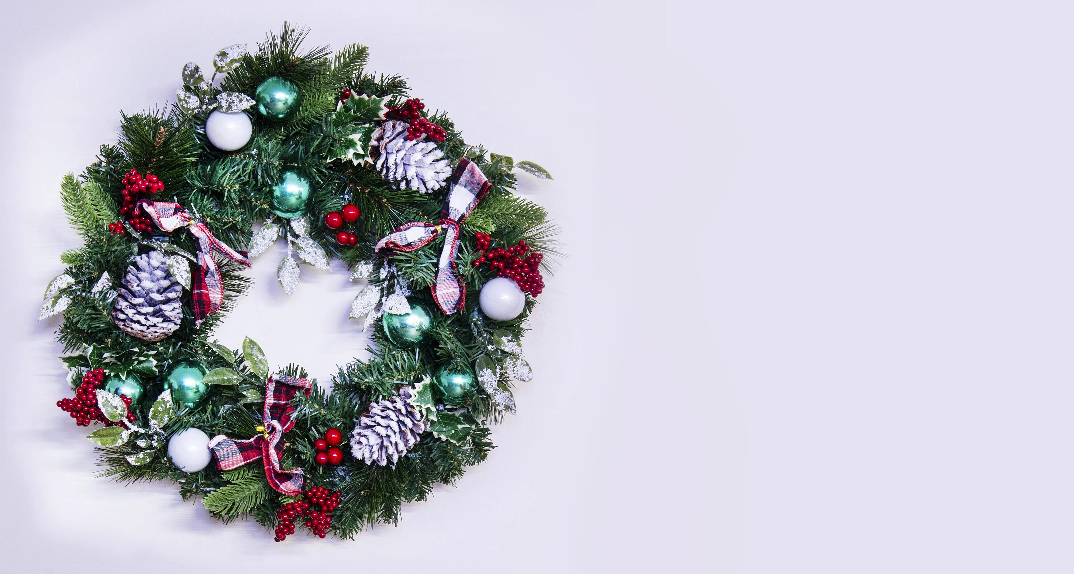 Pre-decorated Christmas wreaths are carefully crafted with traditional elements. You can find Christmas wreaths with bows, Christmas wreaths with pine cones and berries and more, all intricately arranged to capture the festive spirit.